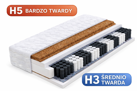 Materac Sprężynowy 140x200 Kieszeniowy H4/H5 MEDICAL HARD BIS z 3x Kokosem 24cm 100kg+
